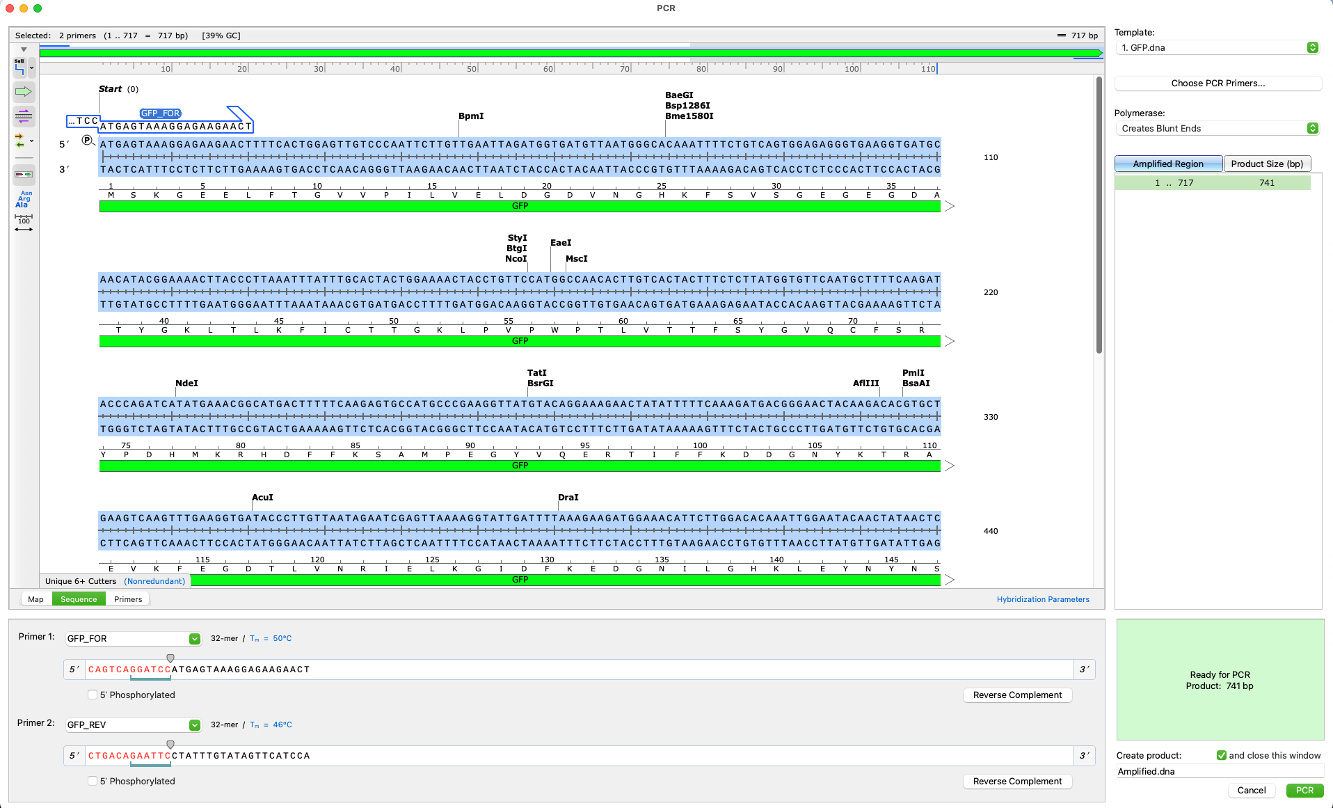 - Elegant, information-rich windows for simulating common cloning and PCR methods