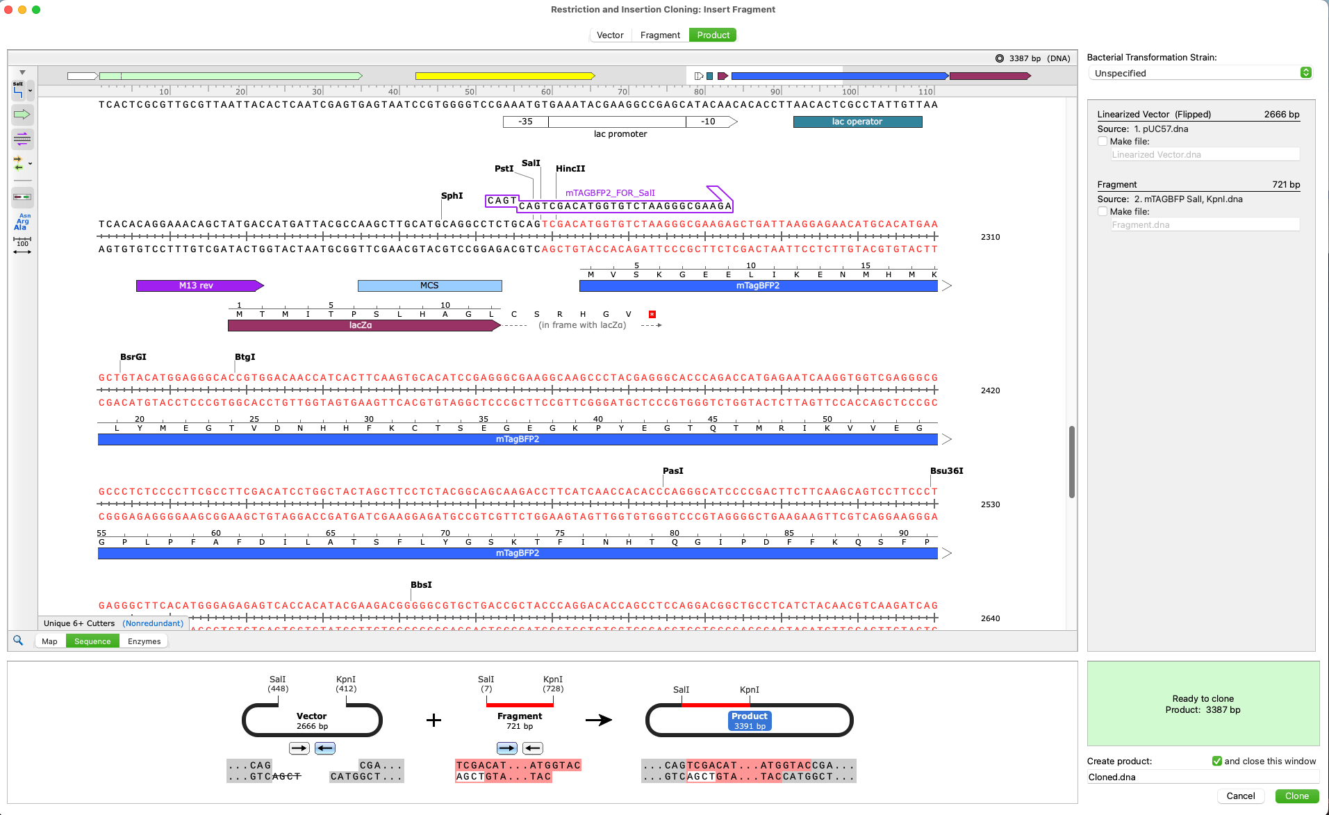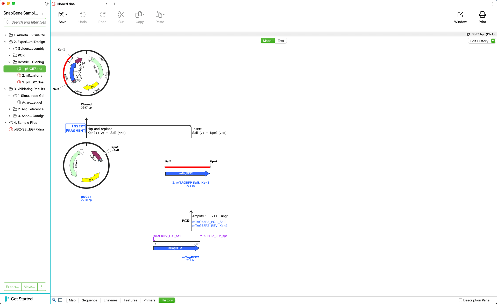 - Elegant, information-rich windows for simulating common cloning and PCR methods